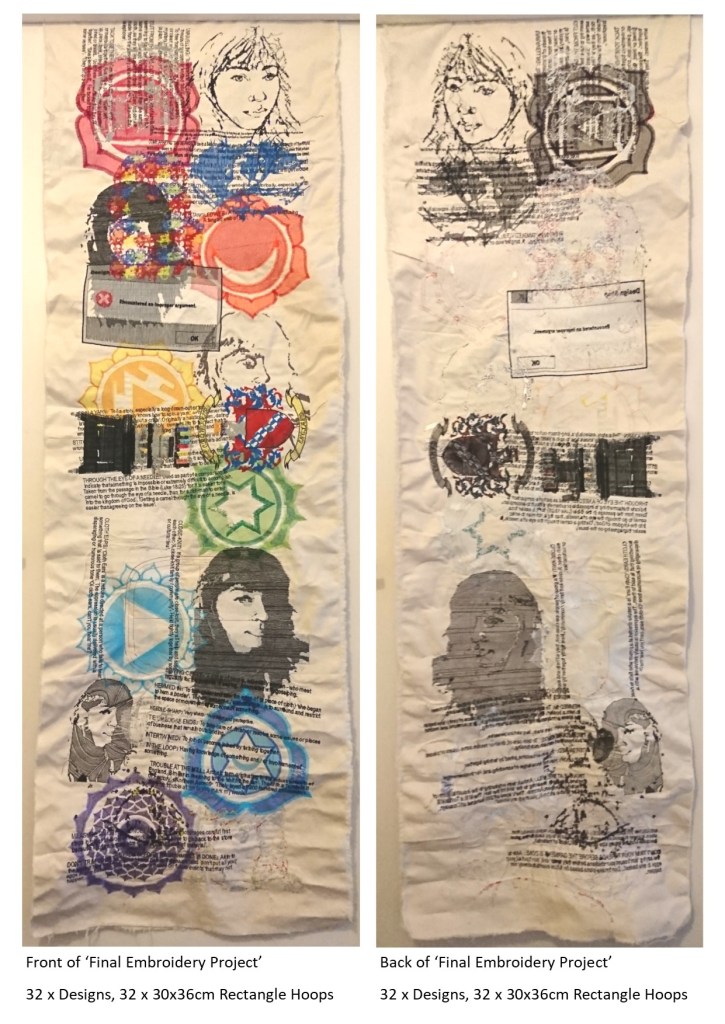 EMBROIDERY ARTWORK JULIET CROWTHER, MA BY RESEARCH JAN 2017 – JAN 2019 TECHNICAL FILE / CHRONOLOGICAL AUDIO VISUAL DATA Share this: Share on X (Opens in new window) X Share on Facebook (Opens in new window) Facebook Like Loading...