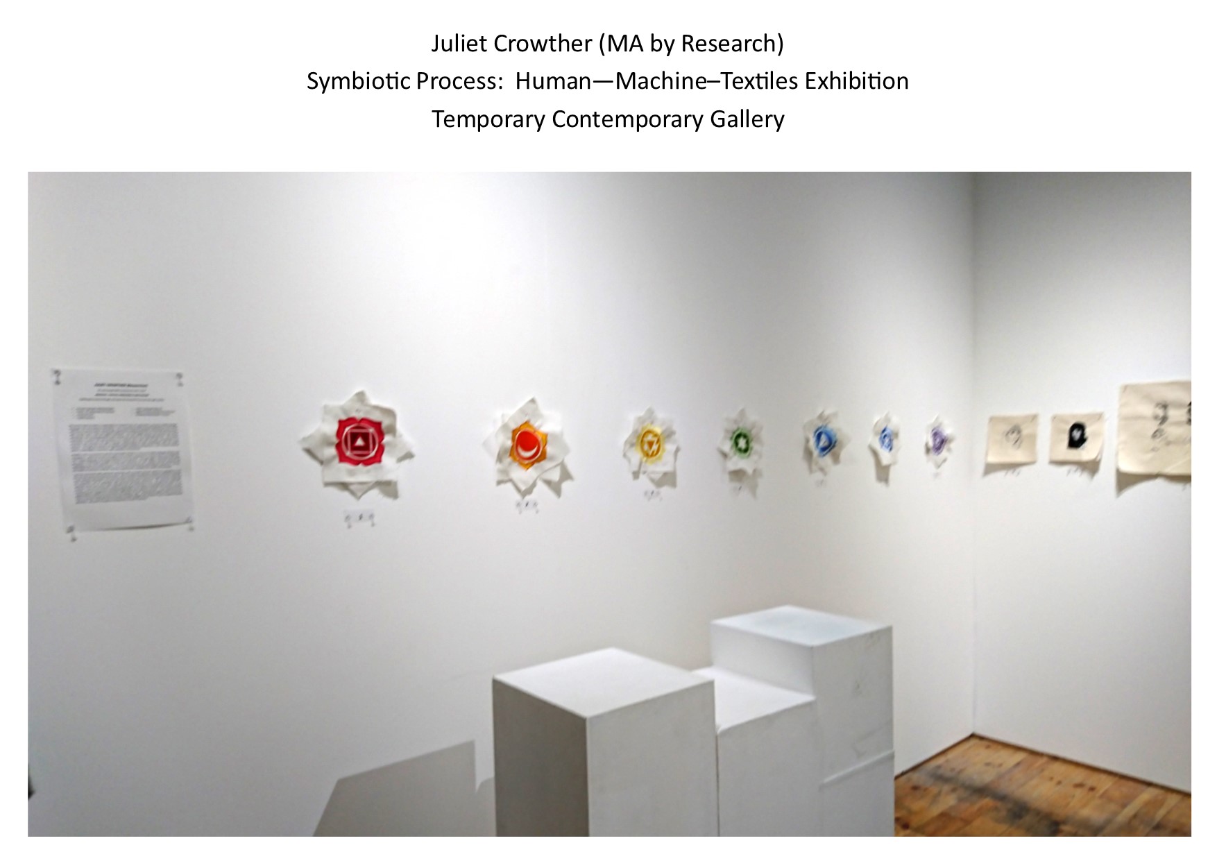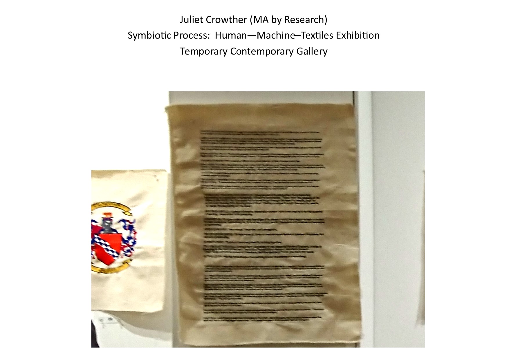 The exhibition theme; Symbiotic Process: HUMAN – MACHINE – TEXTILES, aims to convey through textile artworks and audio-visual installations, a shared sensory and experiential textile making process encountered between human and machine. Personal ancestral textile heritage is explored through the mode of textile production – notably digital embroidery and domestic machine knitting, whilst demonstrating the relationship and interaction with industrial textile machinery via audio-video installation